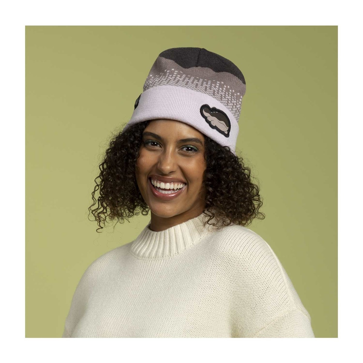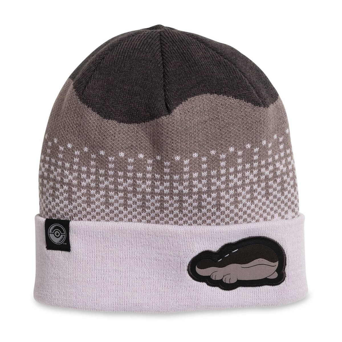 Battle winter breezes and blizzards in comfort with the help of a Pokémon friend! Clodsire smiles lazily as an embroidered patch on the cuff of this brown beanie features a winter-inspired theme.
