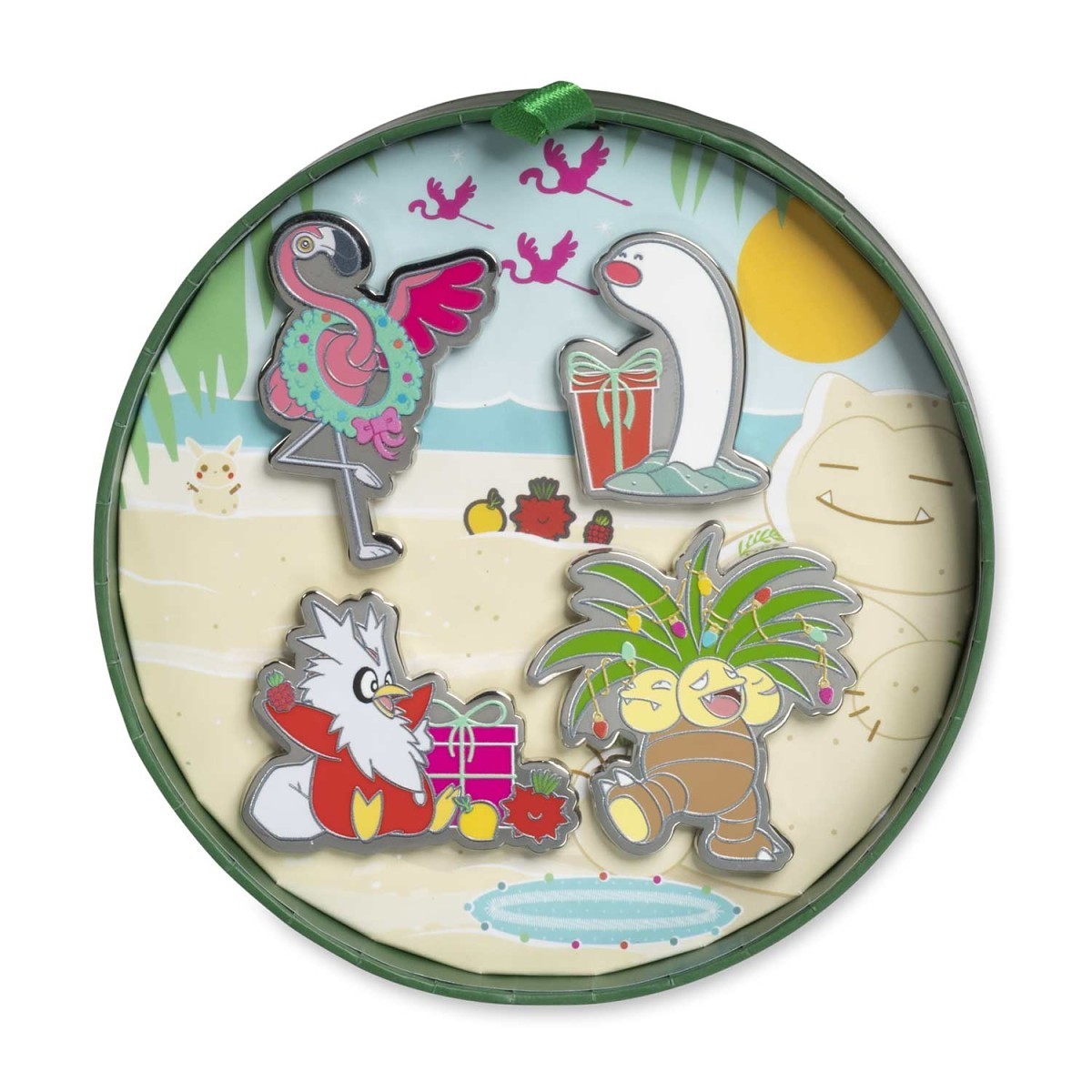 Pokémon Holiday Pin Box Set: This gift-ready box includes collectible pins featuring iconic characters like Exeggutor and Flamigo. Each pin is finely detailed for sharp colors and lasting quality.