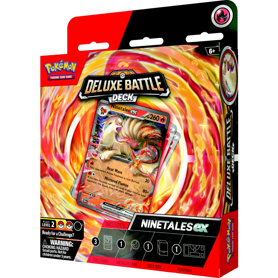 A Deluxe Challenge for Your Opponent! The new Pokémon TCG: Deluxe Battle Decks offer a step up for players who are ready for a challenge, with more advanced strategies and additional power cards. Each 60-card deck includes 3 foil cards and everything you need to play right away. Let the deluxe battle begin!